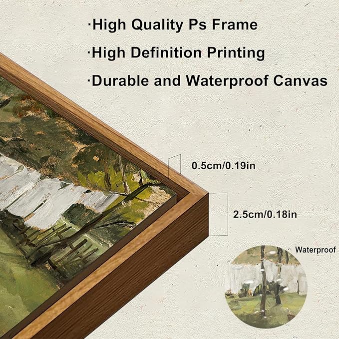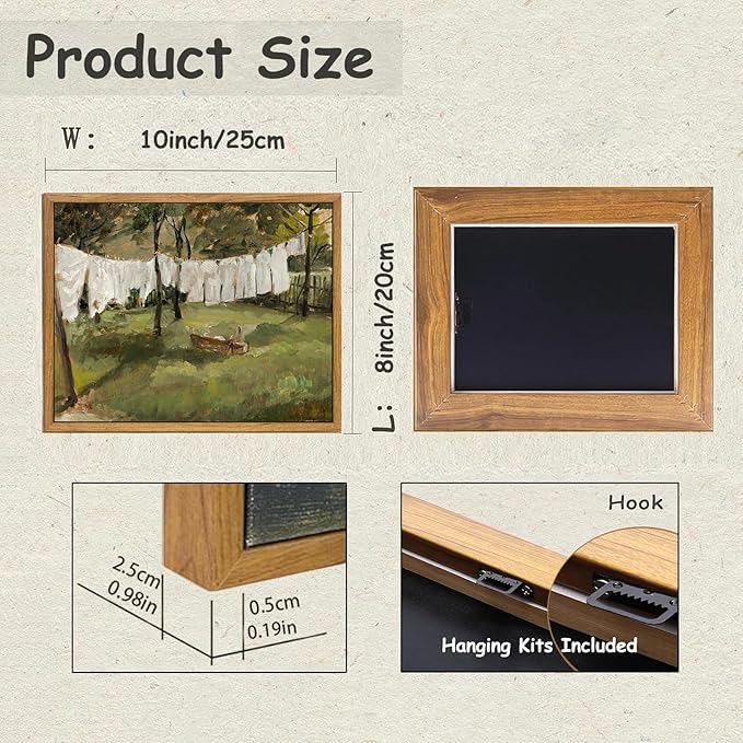 - 【Ready To Hang】Measuring 8x10Inch(20x25cm), this framed canvas art wall decor arrives ready to hang on the wall with hanging kits. (Before nailing the hook onto your wall, please refer to the installation instruction image provided. ) This vintage painting piece will bring a soothing effect to any room of your home with its calming colors. This antique landscape print is perfect for farmhouse style spaces, with a bold elegance that makes it an iconic centerpiece for you.