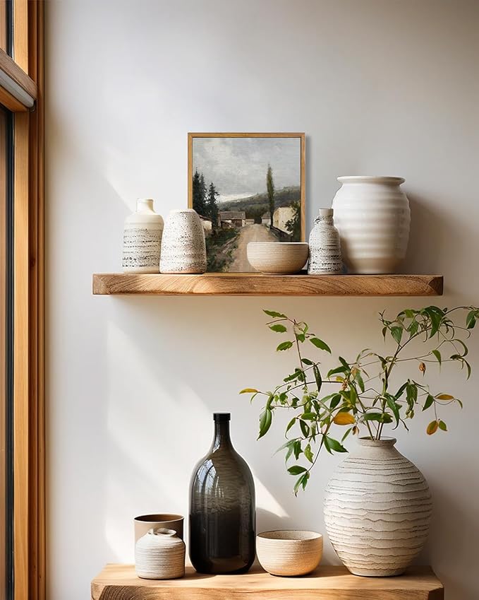 - 【Framed Wall Art Canvas Prints】This antique country landscape painting will bring a soothing effect to any room of your home with its calming colors. This country oil painting is perfect for farmhouse style spaces, with a bold elegance that makes it an iconic centerpiece for you. The framed vintage landscape wall art decor is ideal for farmhouse decoration, this artwork adds a rustic touch to your bathroom, bedroom, and living room, creating a serene and cozy atmosphere.