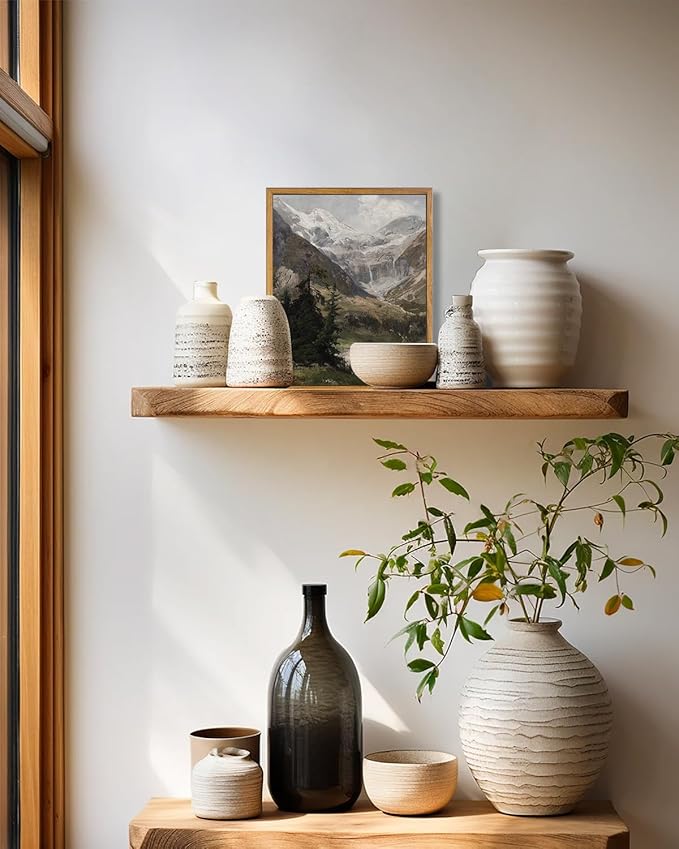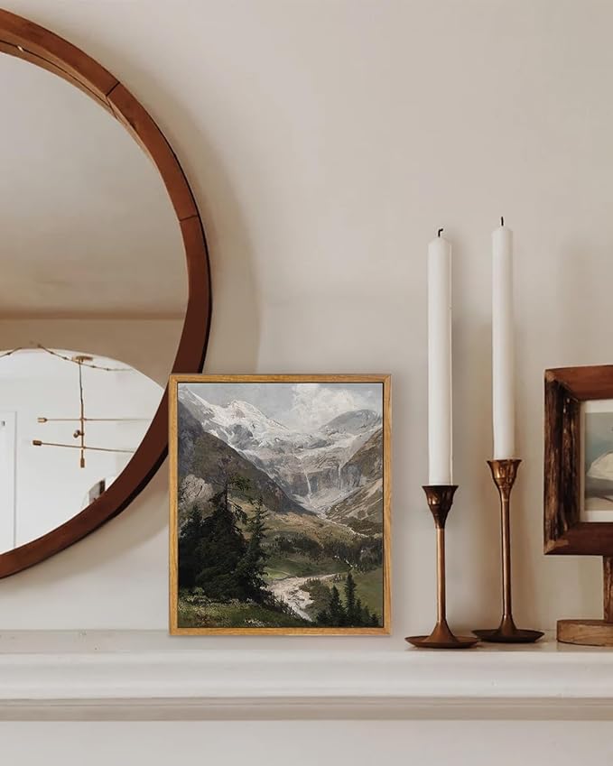 - Framed Vintage Landscape Wall Art: Enhance your home with this exquisite KBKBART framed vintage landscape wall art. Featuring a mountain valley scenery, this oil painting on canvas brings the serene beauty of nature into your living space, creating a tranquil and picturesque environment.