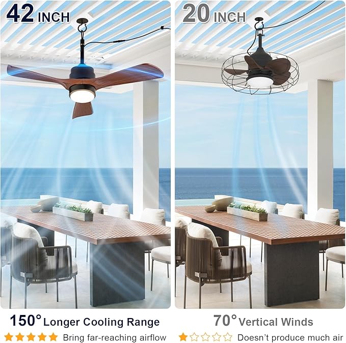 - 【All-Weather Outdoor Ceiling Fan】Enjoy refreshing airflow year-round with this 42 inch outdoor fan rated IP65 waterproof, perfect for resisting rain and humidity.Perfect for indoor and outdoor use in patios, porches, and gazebos.