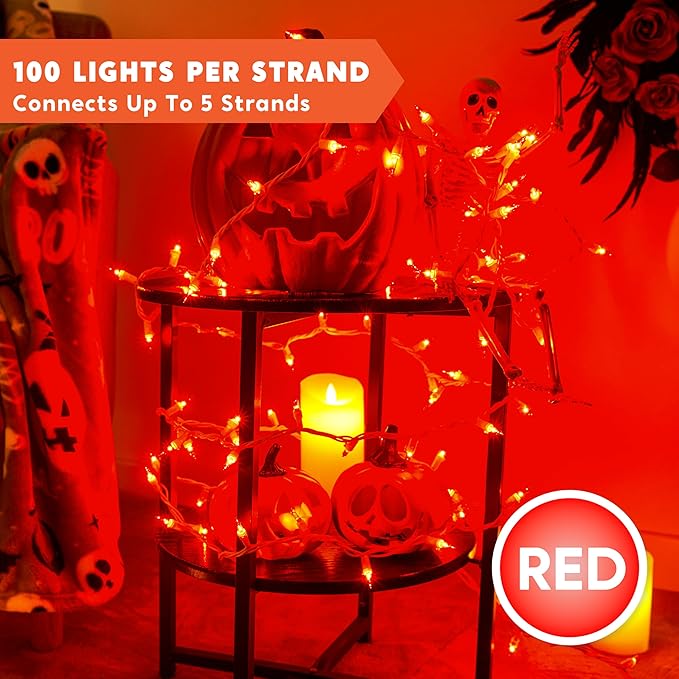 - Connect Up to 5 Sets for Expansive Displays. Maximize your decorating power! These connectable Christmas lights feature end-to-end connectors, allowing you to link up to 5 sets for over 100 feet of continuous red lighting. Perfect for covering large outdoor areas, staircases, or hallways without multiple power sources.