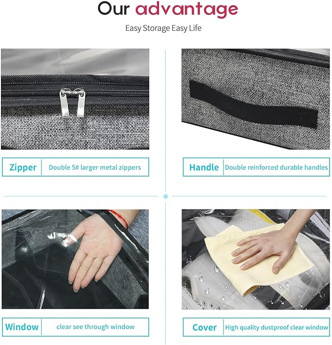- CONSIDERATE DESIGN: 2 sturdy handles on front and side make it convenient to pull underbed, and the 5# zippers are strong enough for your daily handling.