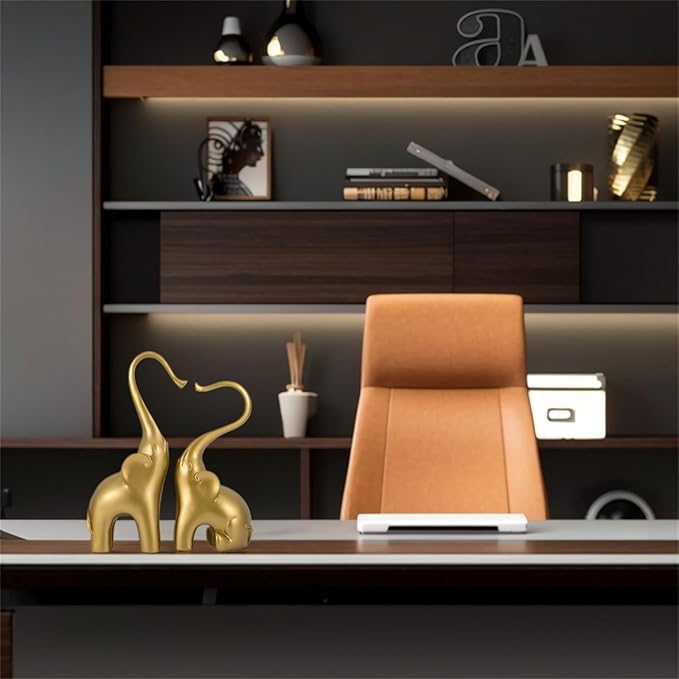 Loving Elephant Statues Home Decor, Small Elephant Figurines in Love for Women, Elephant Sculpture Heart Decorative Objects for Bookshelf Decor (Gold)