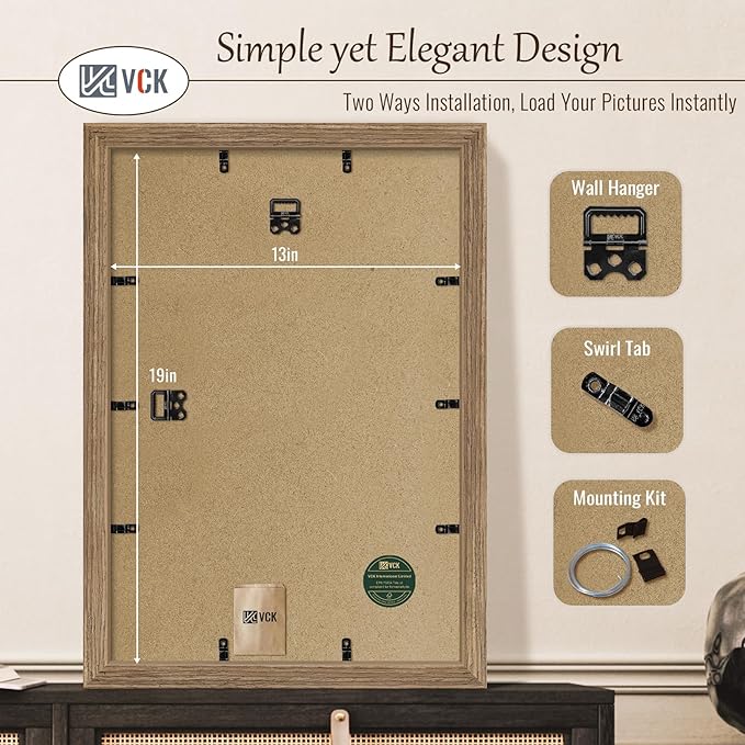 - Effortless Installation: Our poster frame not only comes with hanging hardware for both horizontal and vertical display, but also features a unique spin-lock design. Allows for easy loading of 13x19 or 19x13 photos, prints, diplomas, puzzles, or art
