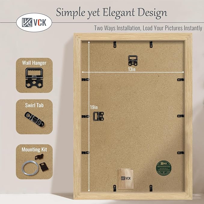 - Effortless Installation: Our poster picture frame not only comes with hanging hardware for both horizontal and vertical display, but also features a unique spin-lock design. Allows for easy loading of 13x19 or 19x13 photos, prints, diplomas, puzzles, or art