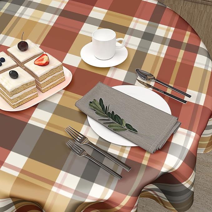 Fall Tablecloth Round 60 Inch Autumn Thanksgiving Table Cloths Round Fall Autumn Buffalo Plaids Table Cloth Rustic Farmhouse Tablecloth for Holiday Kitchen Dining Room Party Picnic Indoor Outdoor