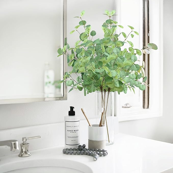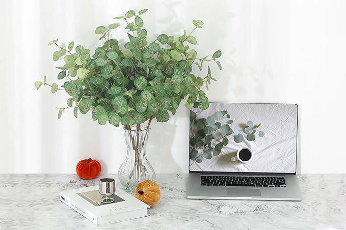 - 【Greenery Decor】Artificial eucalyptus stems can be bent to the right height to fit your flower arrangement decor. Realistic green foliage brings a touch of spring to your home..Not only does it add a natural touch, but it also adds glamour to your living environment.