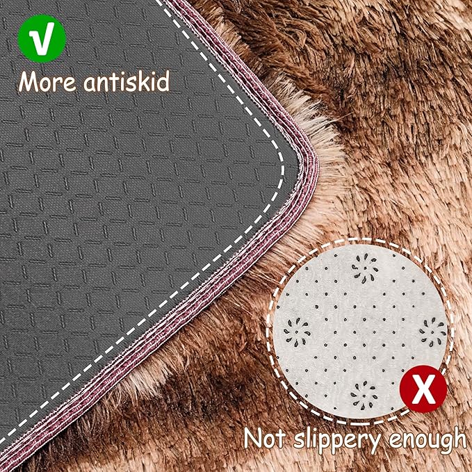 Super Soft Fluffy Living Room Area Rug 2x8 ft Tie-Dyed Brown Shaggy Furry Carpet Washable Non-Slip Floor Rugs Bedroom Bedside Nursery Rug Fuzzy Girls Boy Dorm Home Decor Aesthetic