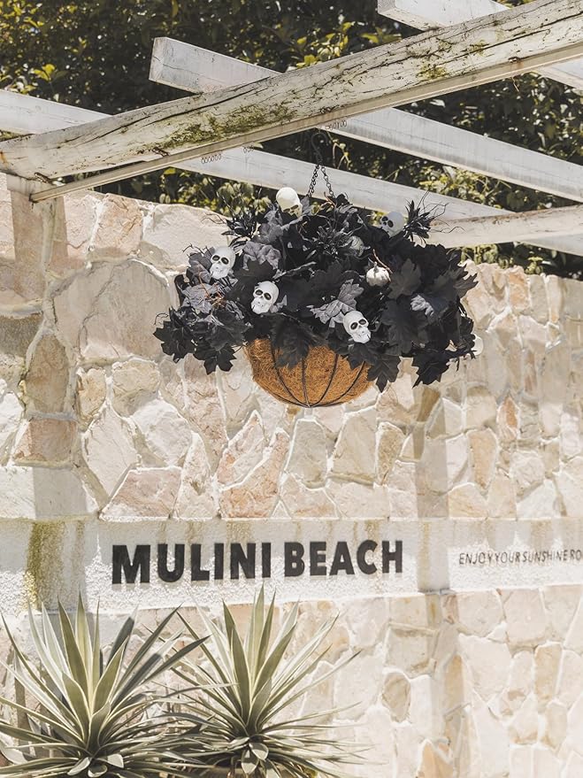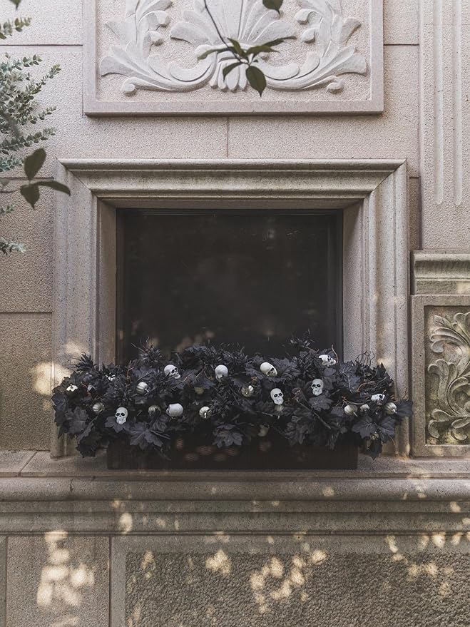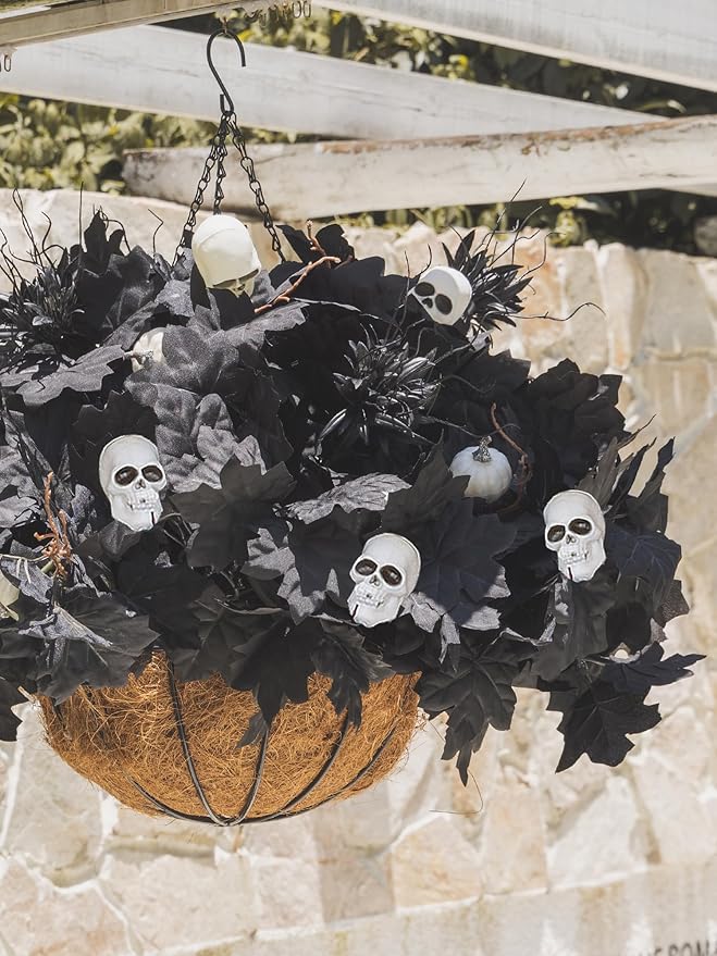 18pcs Fake Plants Outdoor, Halloween Maple Pumpkin Branch, Autumn Artificial White Pumpkins Stem with Black Maple Leaves, Faux Maple Leaves Spray for Halloween Thanksgiving Home Deocr(Black)
