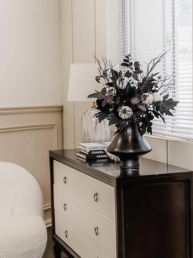 - 【High Quality】 Our artificial stems are made of handcrafted black maple leaves and delicate white pumpkins, using high-quality materials that are vibrant and realistic. The materials of the faux fall stems are very durable and can maintain their beauty for a long time.
