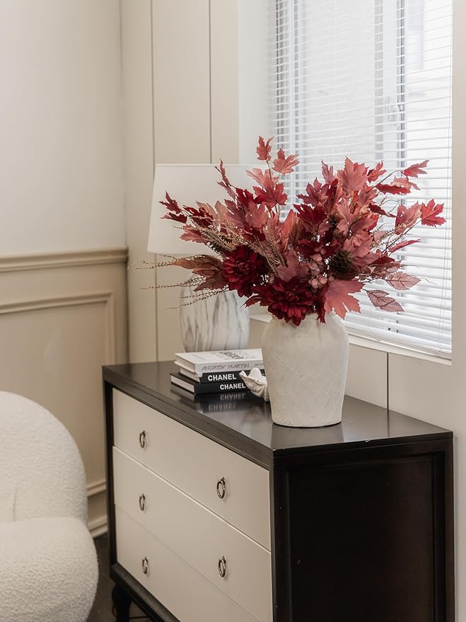 - 【High Quality】 Our artificial stems are made of handcrafted burgundy maple leaves, eucalyptus leaves, and other delicate faux plants, using high-quality materials that are vibrant and realistic. The materials of the faux fall stems are very durable and can maintain their beauty for a long time.