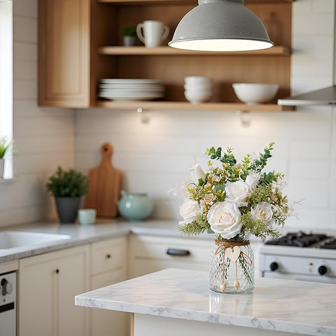 Fake Flowers in Vase,Faux Flowers for Vase,Artificial Silk Roses,Dining Table Centerpiece Decor,Flower Arrangements for Home Decor,Kitchen Decor