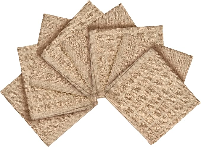 Premium Dish Towels (12”x 12”, 8 Pack) | Cotton Kitchen Hand Towels | Kitchen Towels | Highly Absorbent Tea Towels Set | Tan