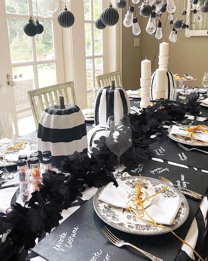- 【Material of Black Garland】:The maple leaves are made of quality plastic and silk cloth leaves ,Also the leave texture is clear that look like real leaves, the garland stems are made of flexible plastic. The black maple leaves can present a mysterious atmosphere, ideal choice to complete the Halloween decoration.