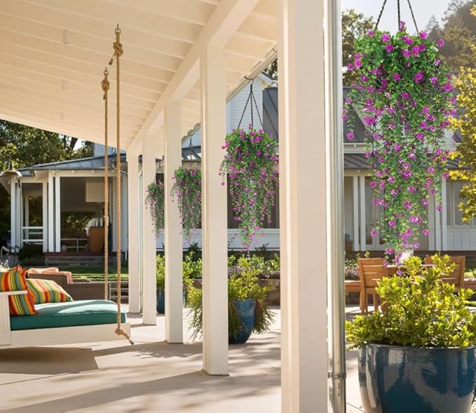 - UV Resistant Plastic Plants:Outdoor artificial fake hanging plants are UV resistant, more realistic, natural bright colour, no pruning, watering, fake hanging plants can be washed with water, can be placed anywhere