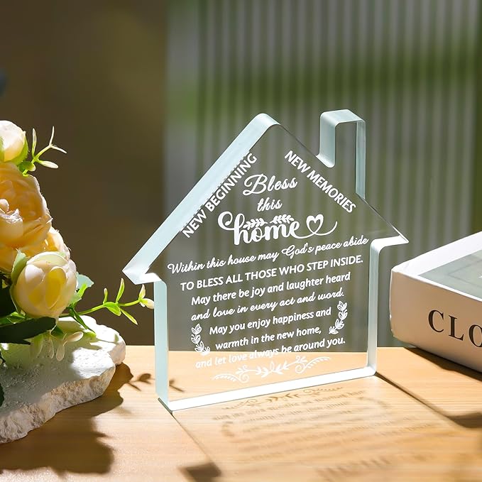 - House Warming Gifts New Home - Our crystal new home plaque is engraved with warm words, It can express your best wishes for the new host and hostess. Great house warming decoration or moving party decor. Best housewarming gift to your friends, sister, brother, relative, neighborhood, coworker, or yourself moving into the new home