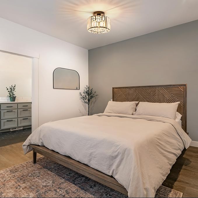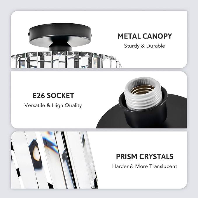 - Versatile Placement: Measuring 9.3" wide and 11.5" tall, this semi-flush mount crystal ceiling light fixture is perfectly proportioned to fit seamlessly into any space, from porches and hallways to entryways, balconies, living rooms, and bedrooms