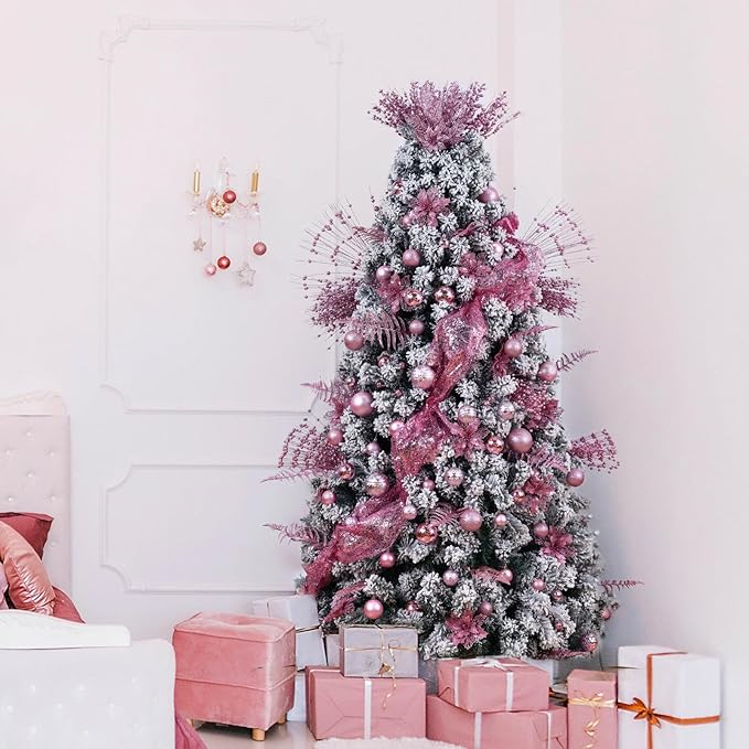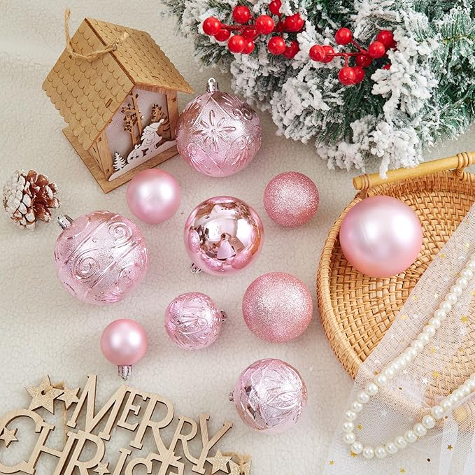 Wironlst Christmas Ball Ornaments - 30pcs Shatterproof Plastic Christmas Ornaments Hanging Ball Decorations for Xmas Tree, Holiday, Wedding, Party (Multi-Size, Pink)