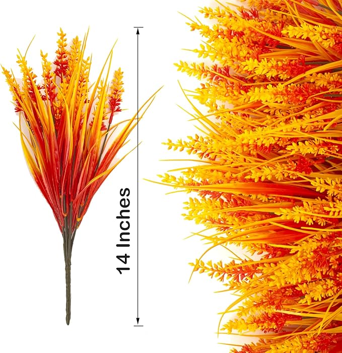 - High-quality materials: Our Artificial Fall Flowers Outdoors Decorations are made of UV resistant plastic, ensuring they can withstand outdoor elements and retain their vibrant colors for a long time. Each bundle contains 20 lifelike faux lavender plants, providing a lush and realistic look to your indoor or outdoor space.