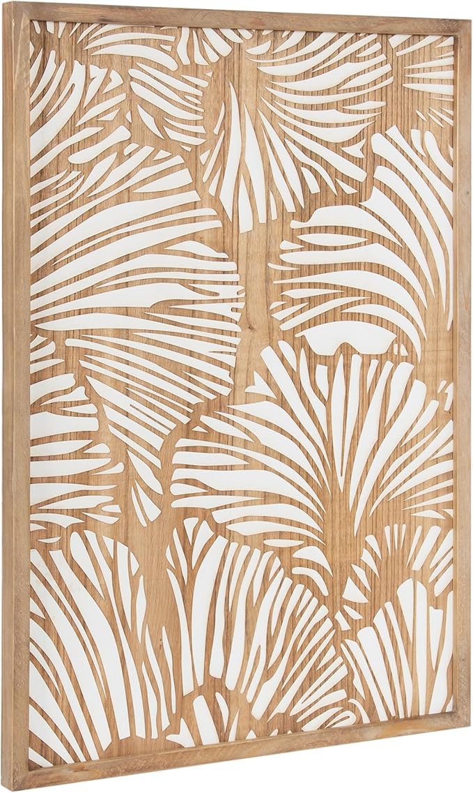 Kate and Laurel Sago Modern Decorative Wood Art Plaque; 23 x 33; White and Rustic Brown; Painted Wood Floral Wall Art with Dimensional Design for Living Room Decor