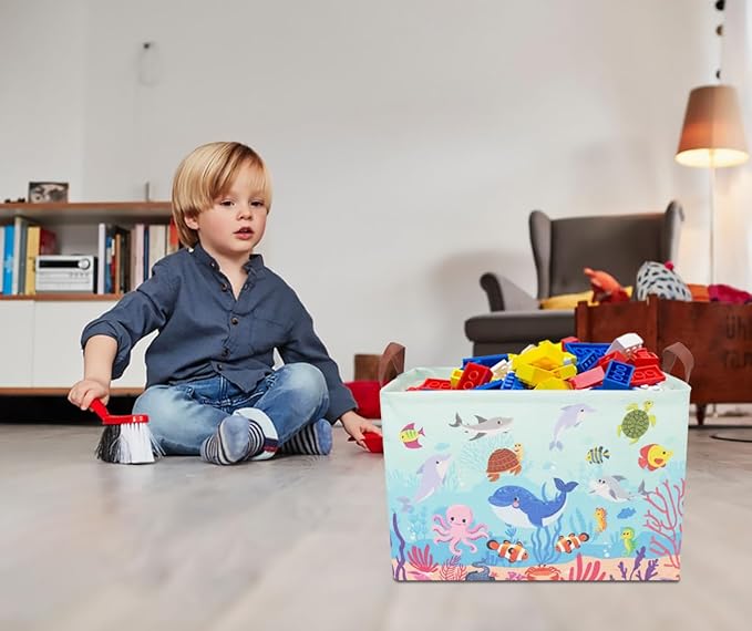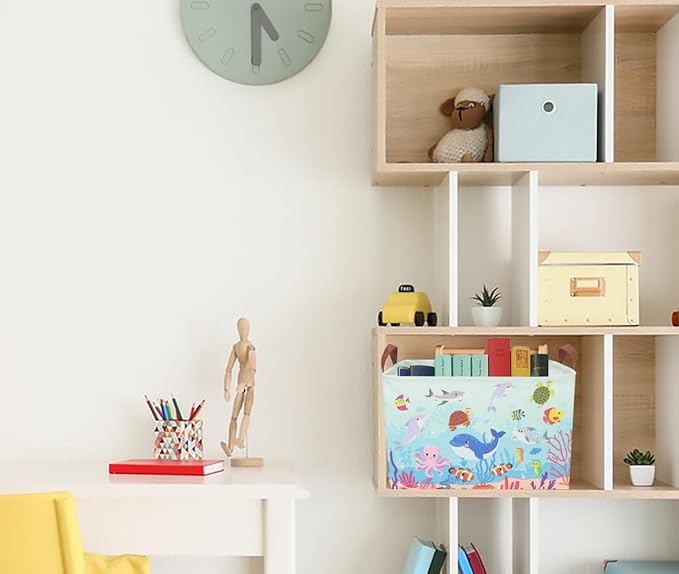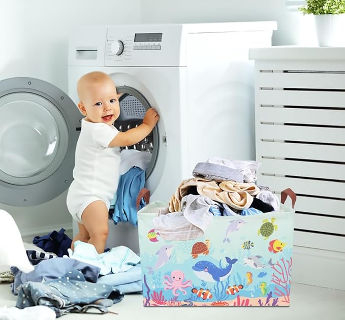 CLOCOR Rectangular Storage Basket Empty,Gift Basket,Waterproof Storage Bin with Handles,Room Decor(Under The Sea)