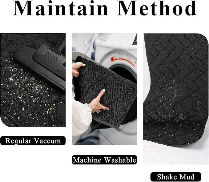 - EASY TO CLEAN: The unique rib fabric design removes dirt or sand easily. When your kitchen mats get dirty, first shake it off outdoors or over your garbage bins, then sweep with a broom or vacuum regularly or use a garden hose to rinse the mat outdoors. For deeper clean: machine washable, use water under 86 (℉) / 30 (℃). Do not iron. Do not bleach. Do not expose it to the sun for a long time.