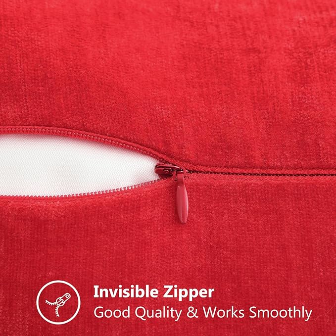 decorUhome Christmas Chenille Soft Throw Pillow Covers 20x20 Set of 2, Farmhouse Velvet Neutral Decorative Euro Pillow Covers with Stitched Edge for Couch Sofa Bed Home Decor, Red