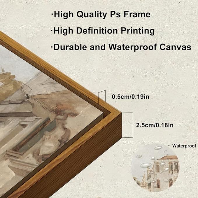 KBKBART Vintage Wall Art, Retro Neutral Italy Wall Art Framed Canvas Art Prints Venice Canva Painting Farmhouse Decor, Rustic Impressionism Scenic Landscape Wall Decor for Bathroom, Bedroom Living Room, Vintage Wall Decor(12"x16")