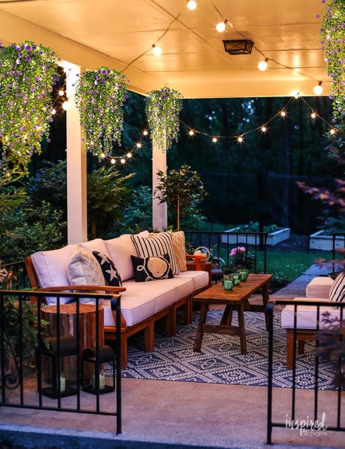 - Realistic Artificial Hanging Plants: These outdoor artificial vines natural textures that are virtually indistinguishable from living plants. Lifelike hanging plants coupled with LED string lights add a touch of nature to your space
