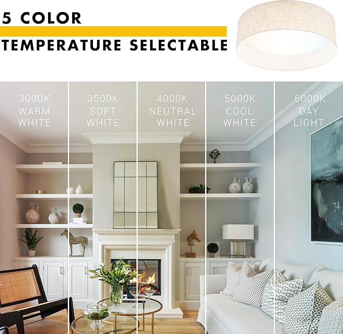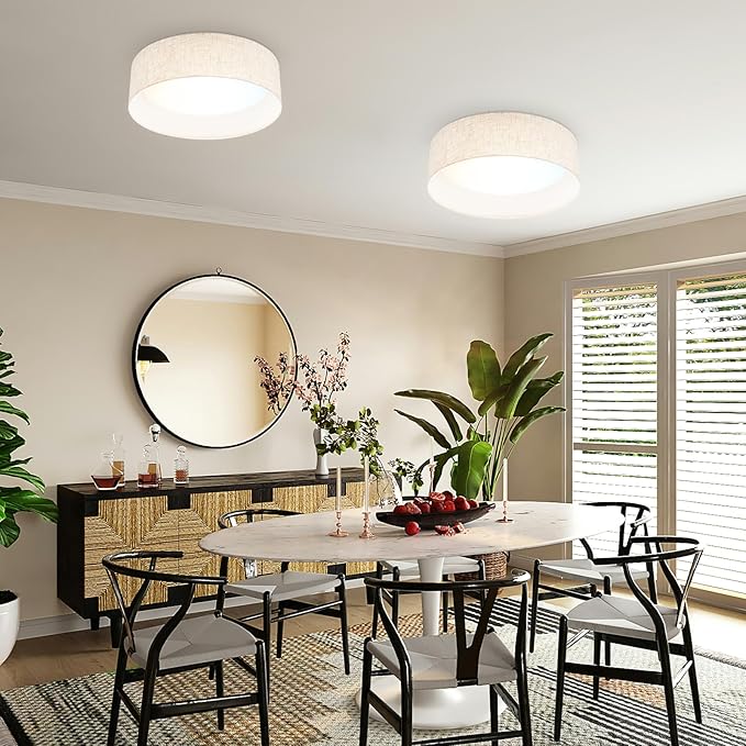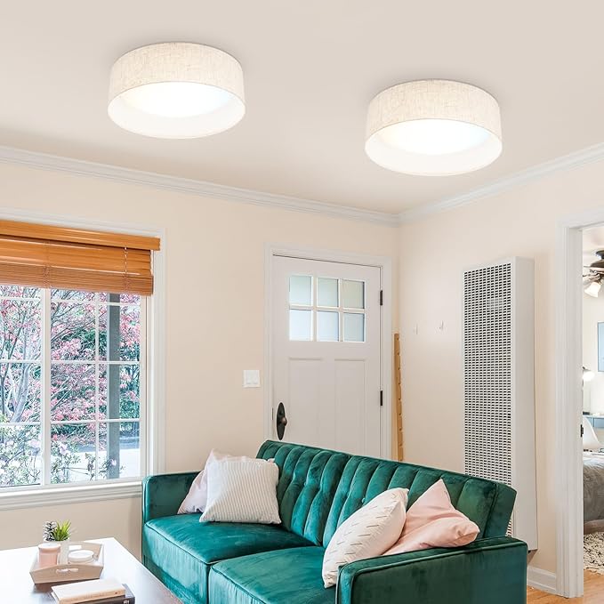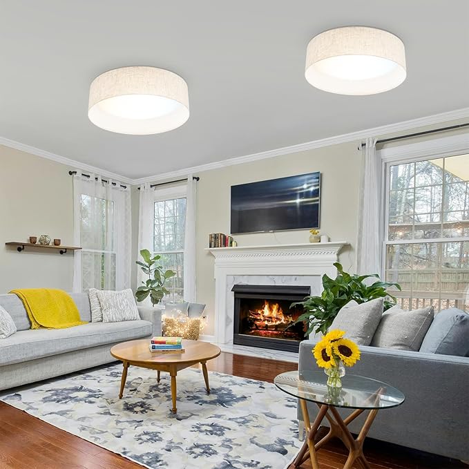 - ๐ฆ Versatile 2 pack close to ceiling light fixture design: This large LED ceiling light flush mount overhead features a sleek and modern design that seamlessly integrates with any dรฉcor. The fabric shade adds a touch of elegance, making it perfect for various settings such as living room, foyer, kitchen, bedroom, bathroom and hallways.