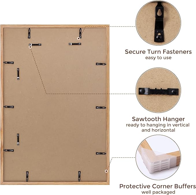 - SLEEK & MINIMALIST HOME DECOR - The neutral oak finish of this wood picture frame set brings out all of the color in your poster, drawing attention to it like never before, you can display your artwork in the most sophisticated way possible with. The excellent craftsmanship and neutral color make it a classic addition to any room - or office! Also a great gift for birthdays, anniversaries, housewarmings, Christmas, Thanksgiving, Hanukkah, and just about any occasion