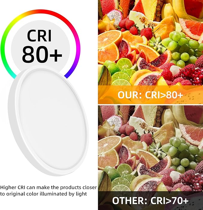- Eye Protection & Brilliant Quality - Enjoy flicker-free, blue light-free, radiation-free, and UV-free lighting with this ceiling light fixture. The natural and uniform lighting sources provide eye protection, while the high CRI (>80) ensures a true and vivid lighting experience. This ETL certified flush mount LED fixture is stable and safe to use.