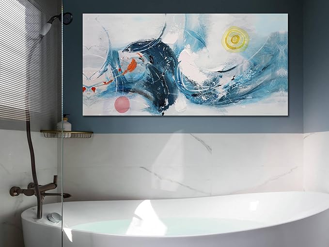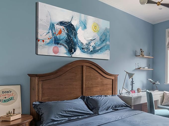 - Abstract Wall Art Size: 40inx20in (100cmx50cm), framed gallery wrapped ready to hang. It do have hand-painted textured, blue and teal colors create a unique and eye-catching piece that will be sure to draw attention