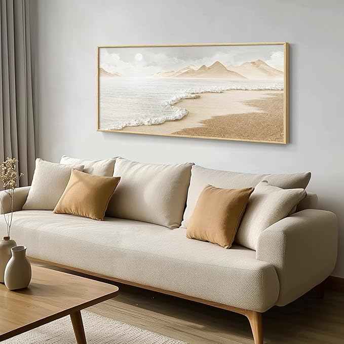 - [Framed Beach Wall Art]: A large boho neutral framed abstract beach wall art, the size is 24x48 inches. The frame is made of high quality material that is not only beautiful but also very sturdy. This framed wall art in neutral colors is perfect for decorating living room wall.