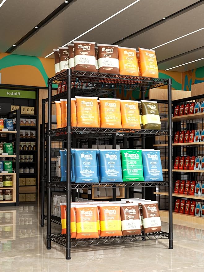 4 Tier Heavy Duty Shelves Adjustable Storage Shelf Organizer Metal Garage Wire Shelving Unit Pantry 18" D x 36" W x 59" H,Black