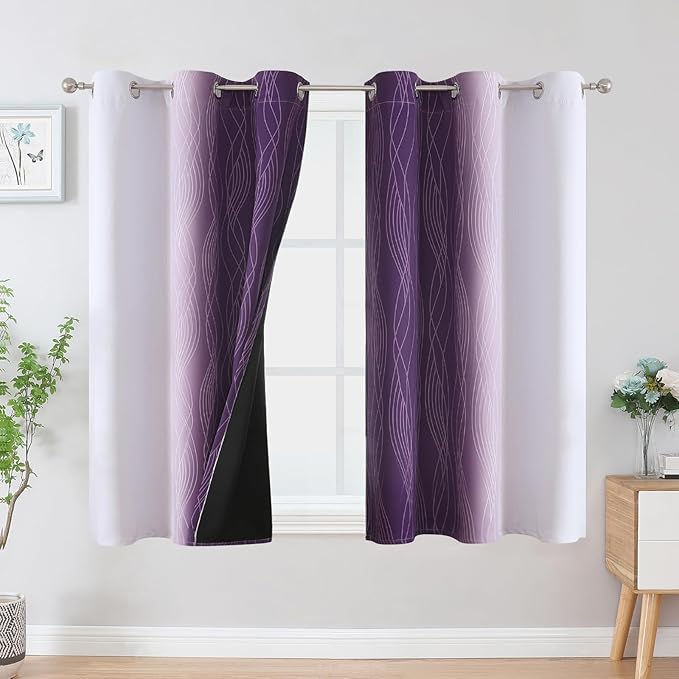 Estelar Textiler Purple and Greyish White Ombre Blackout Curtains 54 Inch Length 2 Panels, Full Room Darkening Gradient Drapes for Kitchen,Thermal Insulated Grommet Short Curtains for Bathroom,42Wx54L