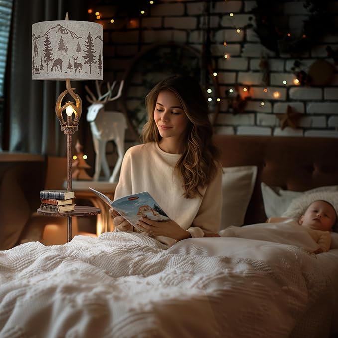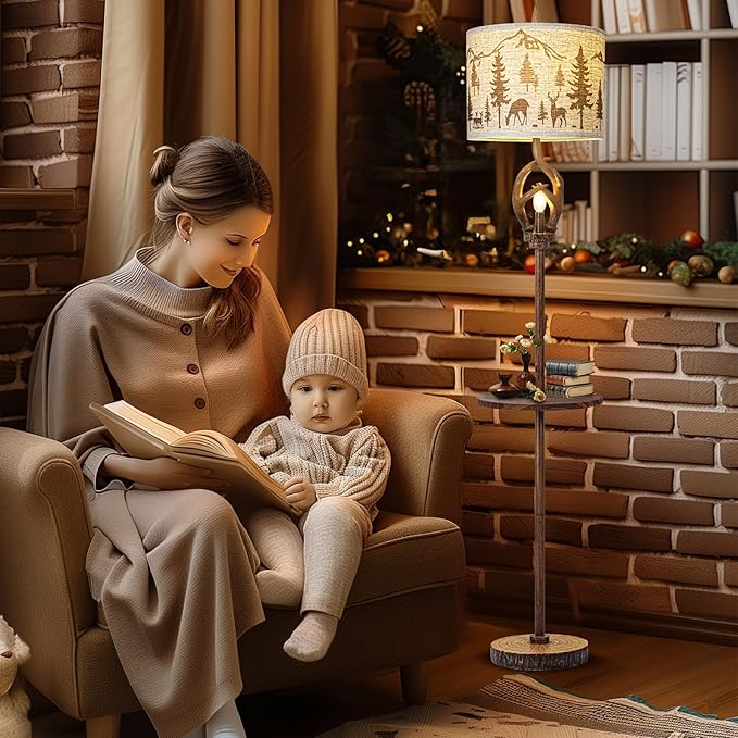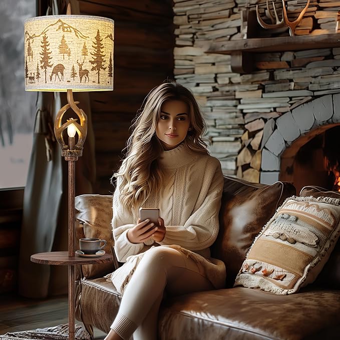 - UNIQUE DESIGN : This 65 "tall lamp features an imitation wood grain base and deer angle lamp post design, and is decorated with a 13" x 13 "x 10" linen fabric lampshade to create a natural forest style that complements any home decor in the living room and bedroom