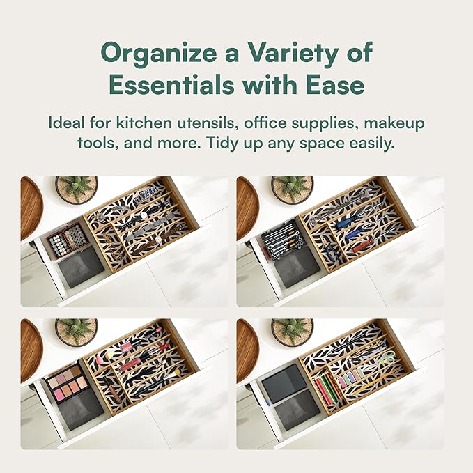 - Versatile Drawer Organizer. Tackle any clutter in any space with our multipurpose kitchen utensil holder. It’s not just for the kitchen! Use this bamboo tray as a desk organizer, makeup organizer, jewelry organizer, bathroom organizer, and more.
