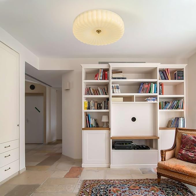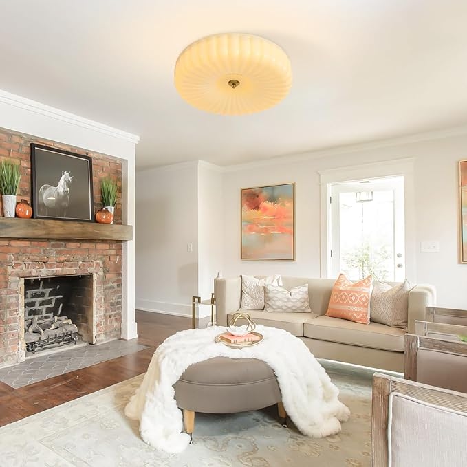 - Excellent Design: This mid century modern overhead light is made of high-quality glass, with unique ribbed shade design, providing a sleek design. The unique yellow glass lampshade combines the classic with the trendy, creating an elegant and beautiful look, providing a romantic lighting effect