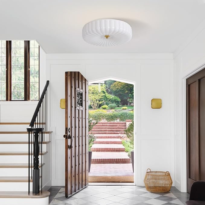 - Cute Ribbed Glass Lampshade: This mid century modern overhead light is made of high-quality glass, with unique ribbed shade design, providing a sleek design. The vintage semi flush mount ceiling light fixture not only gives you ample lighting, but also serves as a beautiful decoration