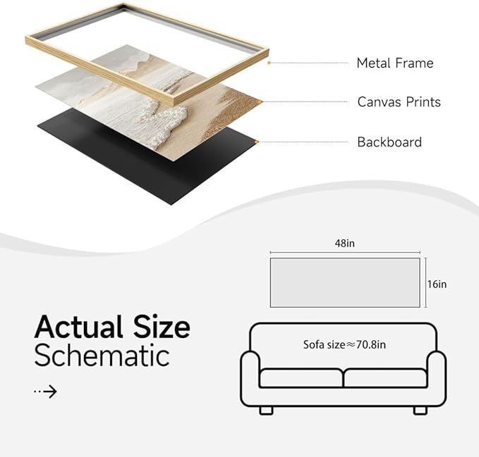 - [Framed Wall Art]: A large framed boho neutral abstract beach wall art, the size is 16x48 inches. The sturdy frame with abstract beach pattern in neutral colors is very beautiful, decorate wall with this wall art to bring more artistic sense to the room.