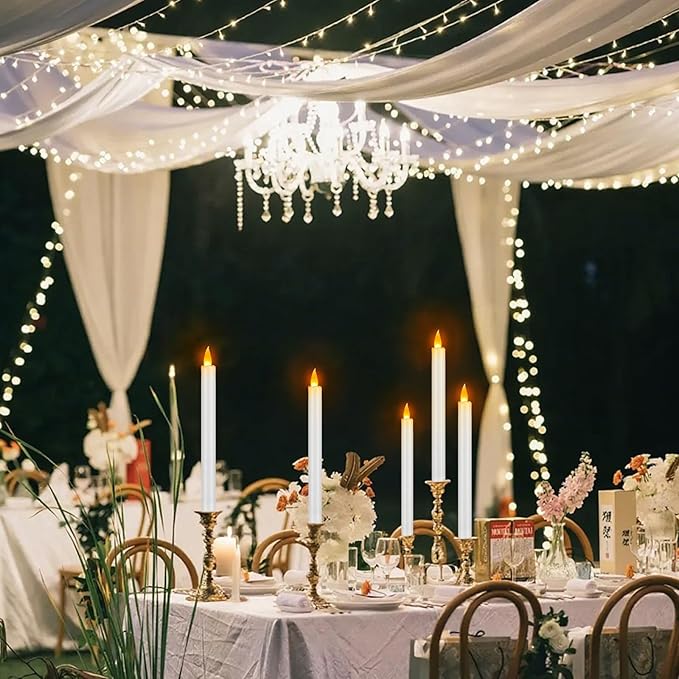 - 10" Tall Flameless Taper Candles: Single taper candle size is Height 10" x Diameter 0.87". Suitable for most candle holders. Battery led candlesticks are great for decorating bedroom, living room, kitchen, porch, garden, fireplace. Create a warm atmosphere at Christmas, Christmas, New year, Halloween, wedding, parties, holidays with these battery operated candles!