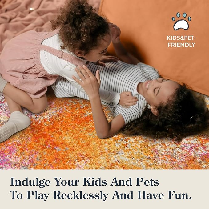 - [Modern Abstract Area Rug] - Add a pop of color to your living room or bedroom with this area rug. Designed with a delicate palette, this collection impresses with an abstract print with splashes of colorful rainbow. Its purposefully faded look fits right in modern industrial and contemporary homes