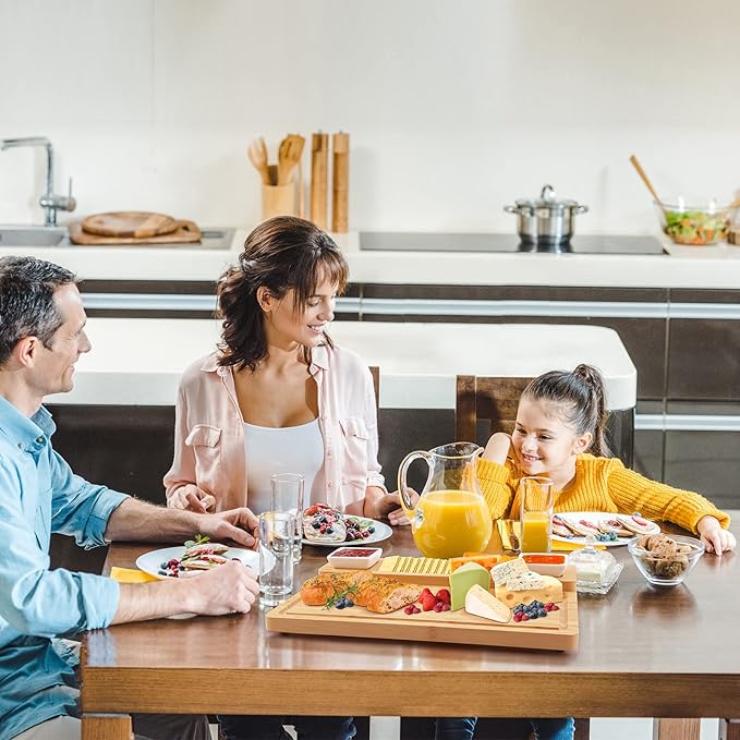 - Optimal Size: The size (15.3"L x 11"W x 1.1"H) provides you with enough space to serve delicious cheeses, meats, appetizers, sliders, sushi and even mini desserts. Whether it is for an intimate occasion or a grand banquet, this cheese board can play a greater role.