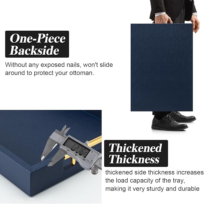- Durable Leather Tray: Our trays are exquisitely crafted with high-end gold handles,The structure is made of 12mm thick medium density fiberboard, which is very sturdy and lightweight.The surface is made of gorgeous pearl cross grain leather, rich in rich textures, which looks very gorgeous and soft and smooth, and will not hook onto the surface of your footstool or other furniture.