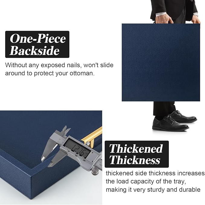 - Durable Leather Tray: Our trays are exquisitely crafted with high-end gold handles,The structure is made of 12mm thick medium density fiberboard, which is very sturdy and lightweight.The surface is made of gorgeous pearl cross grain leather, rich in rich textures, which looks very gorgeous and soft and smooth, and will not hook onto the surface of your footstool or other furniture.