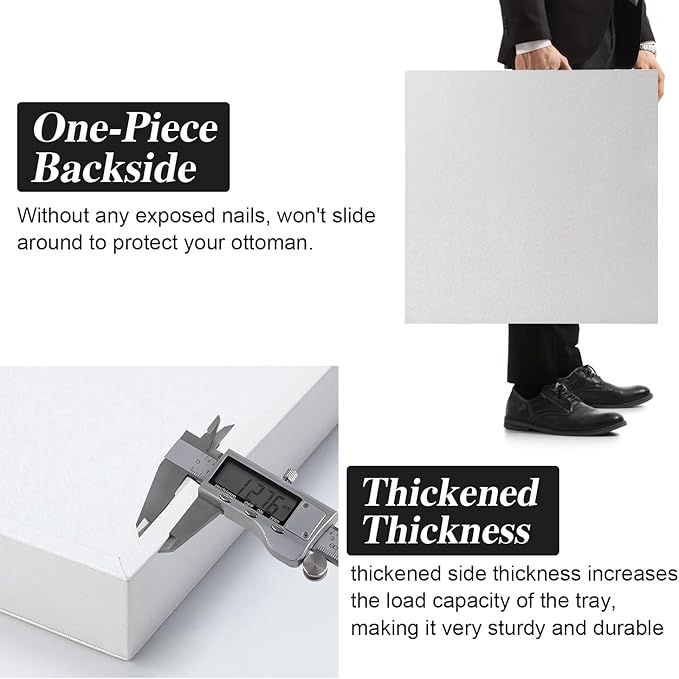 - Durable Leather Tray: Our trays are exquisitely crafted with high-end gold handles,The structure is made of 12mm thick medium density fiberboard, which is very sturdy and lightweight.The surface is made of gorgeous pearl cross grain leather, rich in rich textures, which looks very gorgeous and soft and smooth, and will not hook onto the surface of your footstool or other furniture.