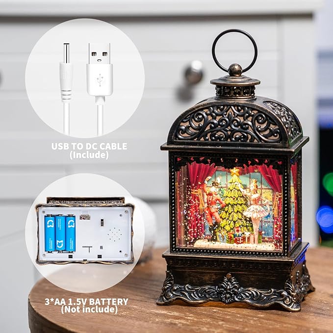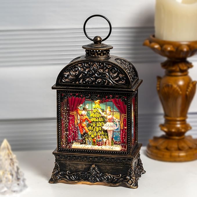 - Christmas Snow Globe: In this special snow globe, the Nutcracker and the Princess are putting on a wonderful story around the Christmas tree. When you turn on the lantern, the inside will sparkle and the water will start to spin up.