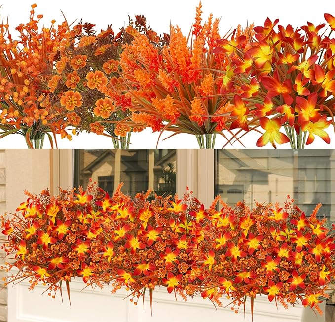 Uieke 36 Bundles Artificial Fall Flowers for Outdoors, Fake Autumn Plants UV Resistant No Fade Faux Plastic Plants for Garden Porch Window Box Outside Wedding Fall Decor