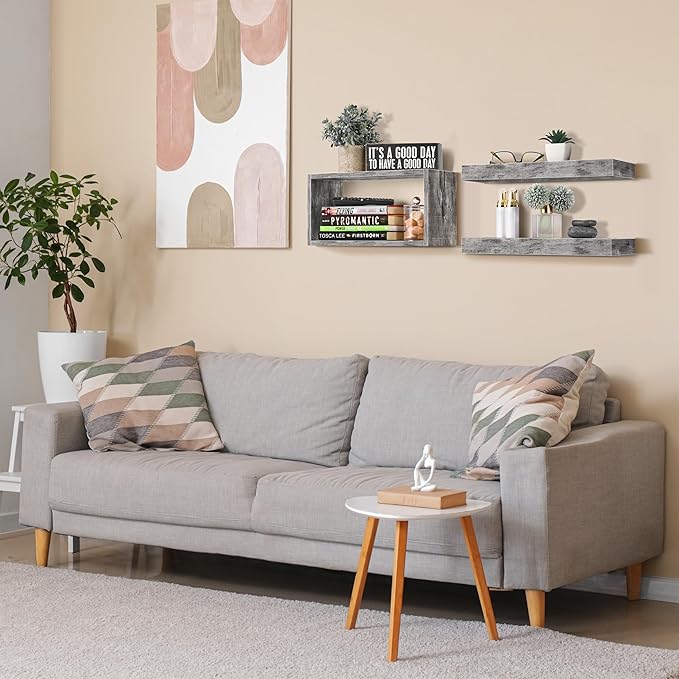 - Practical Design: The sleek, modern design complements any decor style, from modern to rustic. The open box shelf adds a unique touch of visual interest to your blank wall space. These shelves for wall storage set maximizes storage opportunities, allowing you to keep your surfaces clutter-free.